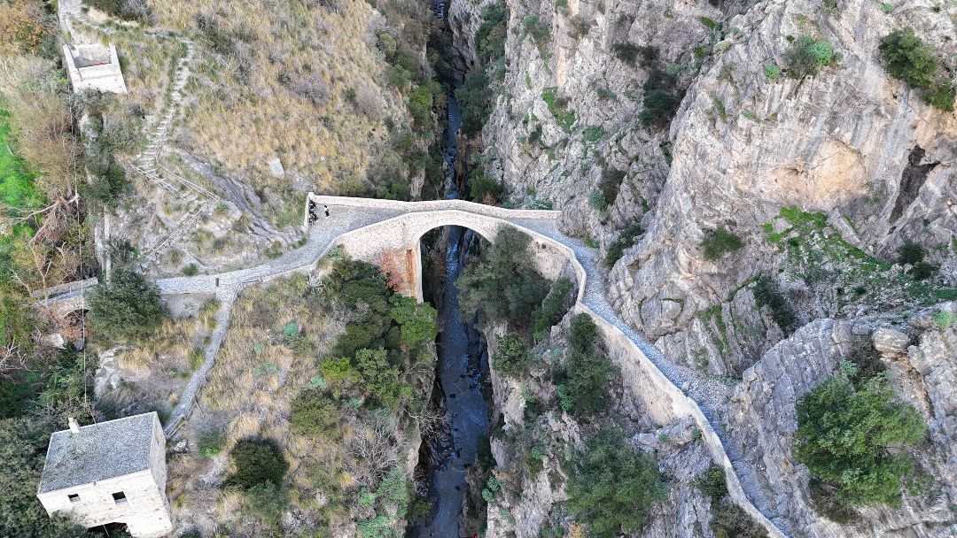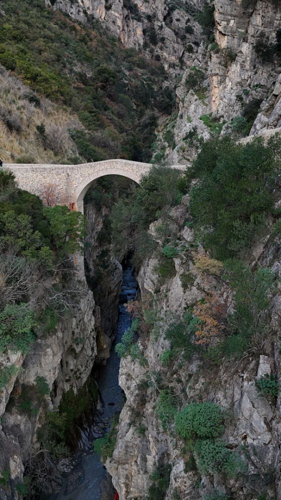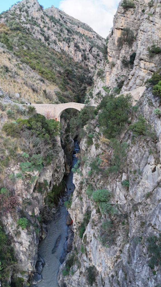 The Devil's Bridge in Civita, Calabria, stands suspended at a height of 260 meters over the lower part of the Raganello stream. It is a bridge built with a single arch "donkey-back" style, used as a connection between the upper Ionian and the mountains of the Pollino range and for observation.